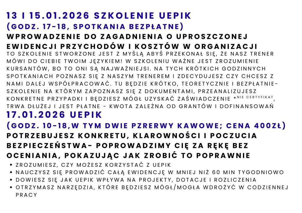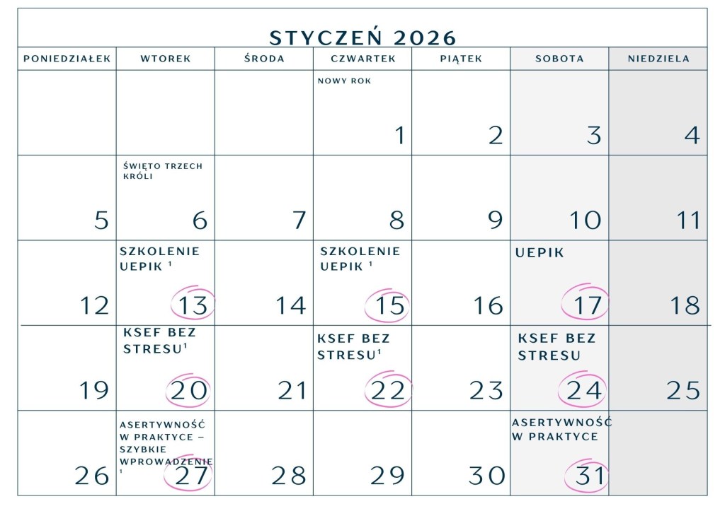 Oto kalendarz najbliższych spotkań w styczniu. Będziemy pracować by było ich coraz więcej. Zapisy na spotkania bezpłatne poprzez wydarzenia na Facebooku na naszej stronie